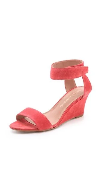 These stappy, neon-coral wedge are perfect for events in the summer/spring and are not expensive. They are drop dead gorgeous